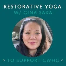 Gina Saka, LMT Lead Photographer & Publisher since 1999. Flyer for Restorative Yoga -donation class Chicago Women’s Health Center -Social Media post for class